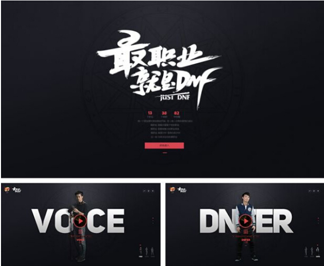 例如:“最職業(yè)DNF”主題站,為打造最具豐富并個(gè)性差異職業(yè)體系,采用精致的大標題設計,結合簡(jiǎn)單的背景,重點(diǎn)突出又不失美觀(guān)。